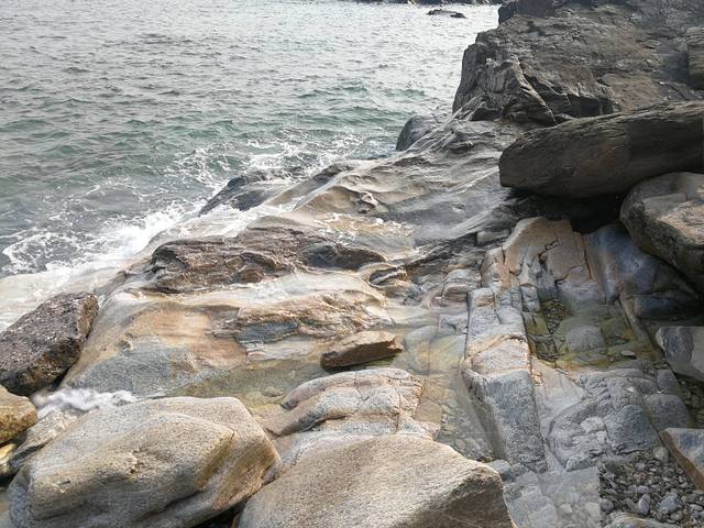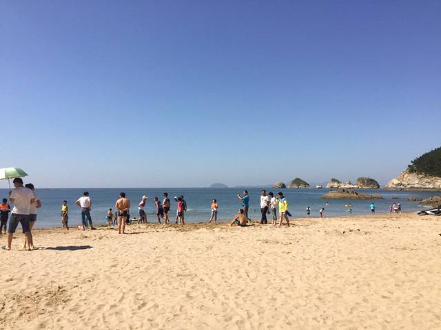 金沙滩是一座天然沙滩浴场,由于在一座山坳中,所以5分钟翻过小山,走过静谧的山路就可以感受到金沙滩的震撼,轰鸣的海浪之声,而金黄的天然沙滩,沙质细到没有朋友,在这里可以游泳、日光浴、玩沙、企业拓展。这里有很多漆黑如墨的礁石,在礁石之中有很多波螺,寻找自己的乐趣吧。