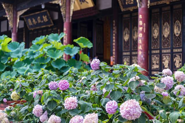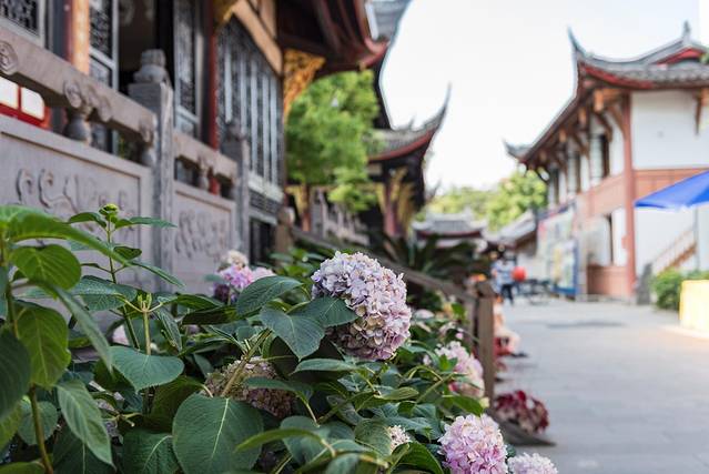 如今夏天来临,寺内开满了各种鲜花,在寺庙的建筑之间,各色鲜花争先斗艳,美不胜收~