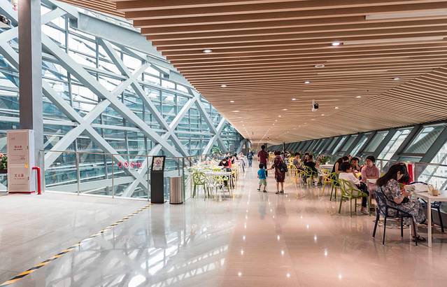 出电梯后是一个巨大的平台,周围一圈开着餐厅,在这里用餐也挺不错。