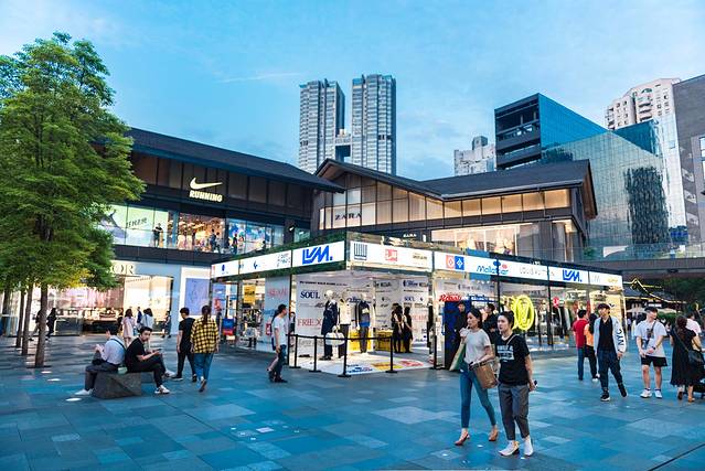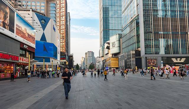 如今的春熙路早已不可同日而语,光是入驻的商家就超过了上千家,各行各业、各种门店一家接着一家,IFS、春熙路、太古里之间的巨大广场随时都是人山人海;周围几条大街围起来的一个大范围加起来超过了20公顷的巨大面积,在网上被称为【中国特色商业街】与【西部第一街】。