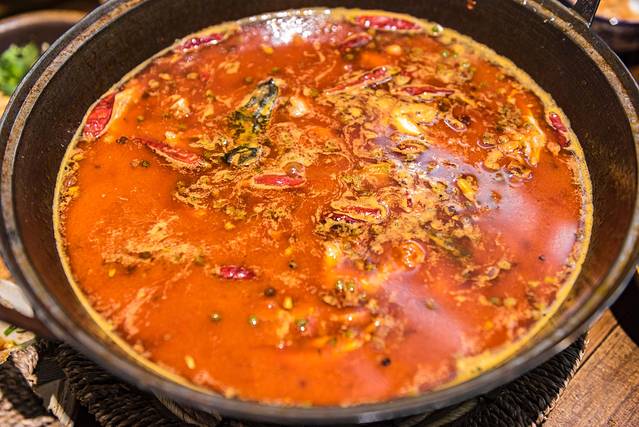 鱼的口味有好几种,我个人比较推荐麻辣味,点好之后店里会将烧得滚烫的鹅卵石端上来,然后倒入熬好的鱼汤,瞬间便煮得滚开起来,放入鱼片之后不过三分钟即可食用;搭配店内的秘制料碟,让店内的四川人都吃得大呼过瘾,称赞声不绝于耳。