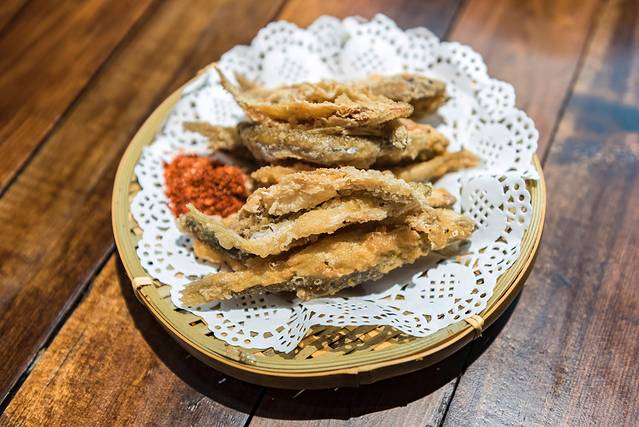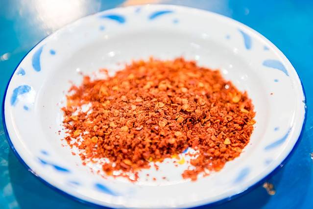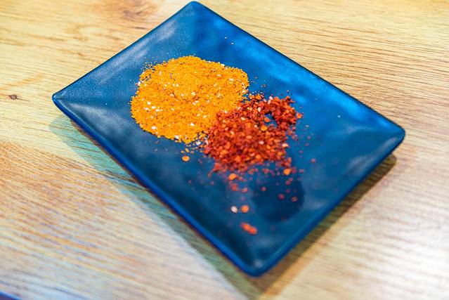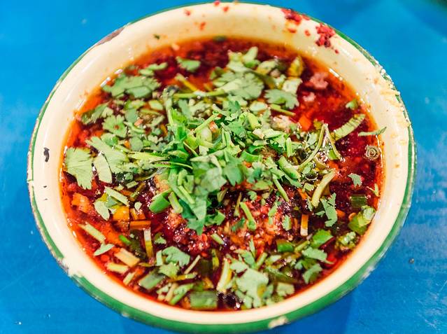 店里的调料有干碟和油碟两种,干碟的味道会辣上一点,但吃着却要爽很多;而油碟则有点吃火锅的感觉,主要用于大份碟子菜。