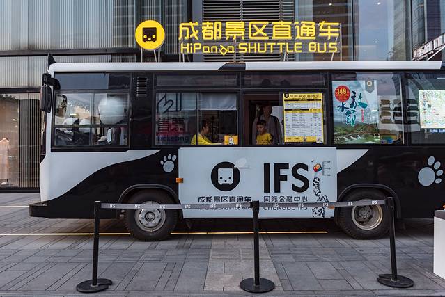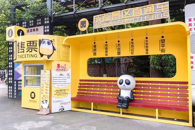 如果大家觉得自己转场景点比较麻烦,那么春熙路的“景区直通车”也是一个不错的选择,这里是四川旅游官方弄的服务点,包含了成都市区及周边的各大景区,都可以购买往返车票直达,详细情况到车子上去看一下就可以了。