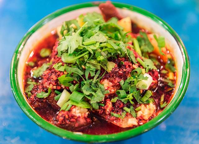 个人最为推荐的就是店里的【小碗菜】,也就是一份份做好端上来的特色菜;其中脑花和牛肉强烈建议大家各点一份,脑花制作得很入味,用筷子轻轻夹开,一点点的分出来蘸着碗里的料汁吃,每一口都是极品。
