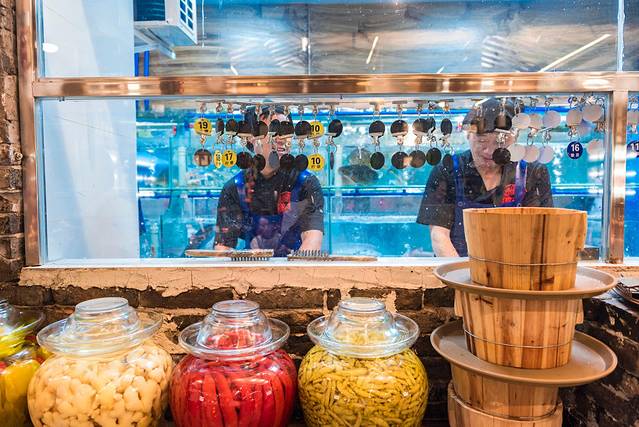鹅卵石煮鱼,在没来之前觉得很奇怪,当自己来了才明白,这种新型的吃鱼方法,必然会引领成都新一轮美食潮流。里的鱼都养在透明的柜里,从店内和店外都能随时看到鱼的情况;厨房采用半开放式设计,让游客可以亲眼看到活力十足的鱼摆摆被当场宰杀削片,保持了最鲜美的口感。