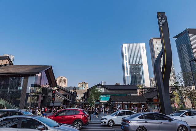 这条被戏称为“成都最繁忙红绿灯口”的道路,就在春熙路与太古里之间,短短三十米远安装了两组红绿灯,依旧是车辆行人络绎不绝。