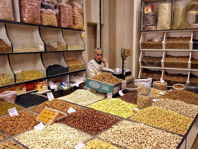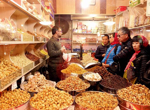 大不里士大巴扎里面的小店非常多,琳琅满目。因为有团友要买干果,导游带领我们逛的主要是卖干果的店铺。