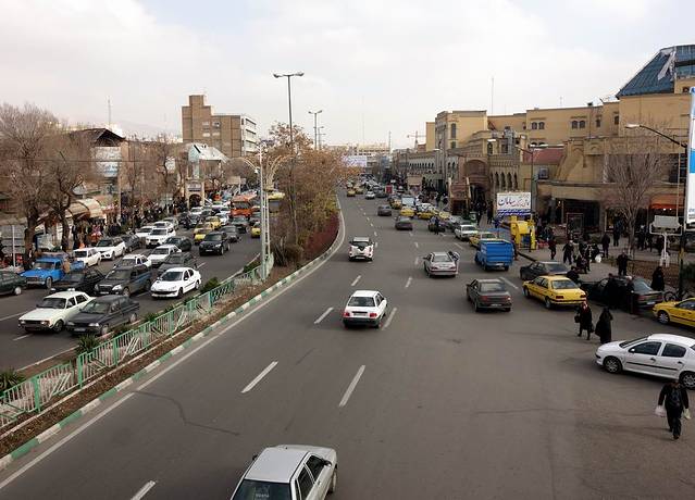 在大不里士,我们游览了被列入世界文化遗产的大巴扎。图为大不里士大巴扎附近的街口。