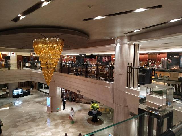 由于是晚上到的,有点累 只拍了这一张,这是去房间的途中,这个角度可以看到下面的正门、旁边是coffee bar 亮灯的是大厅