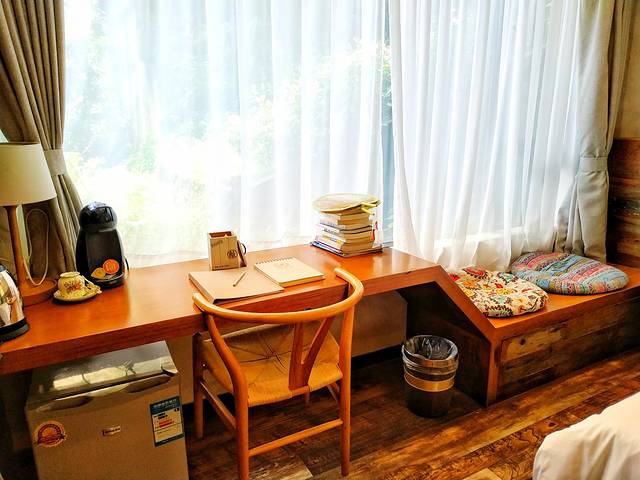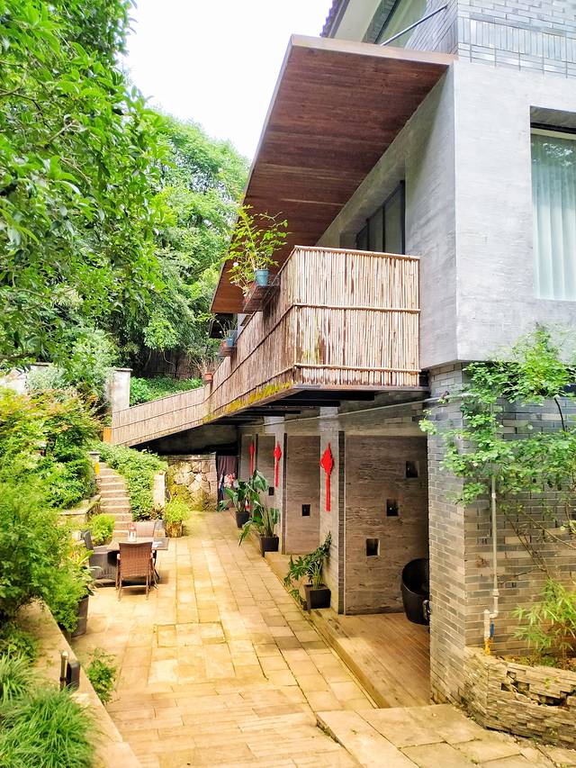 在一楼办理入住的时候,好奇的看了一圈大厅问前台,房间在哪边?前台帅哥笑笑说在山上,指着门口说:管家会带你们上去!