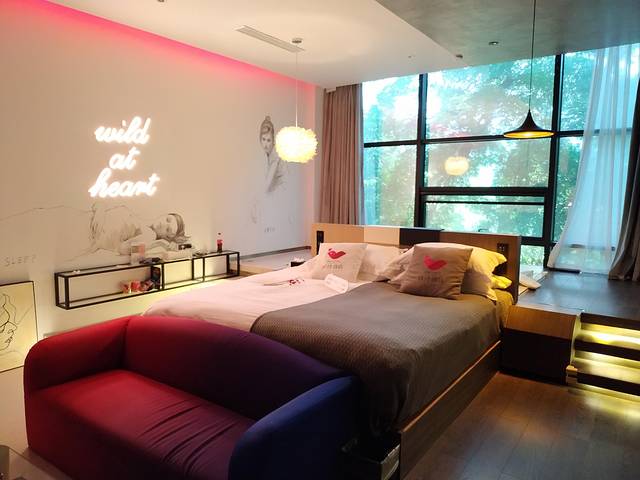男左女右两种风格的碰撞,这应该是这家酒店最适合情侣的一个房间