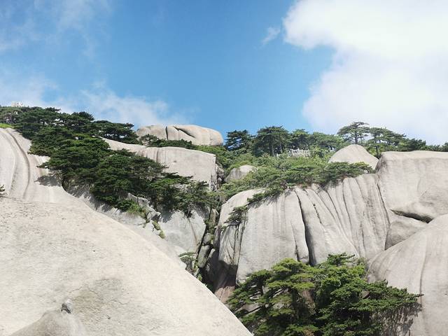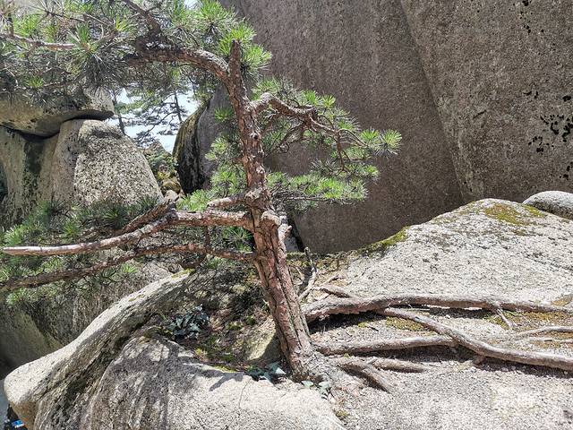 此处为神秘谷上面一点,可以看到屹立在涯边的古松,可以看到奇形怪状的岩石