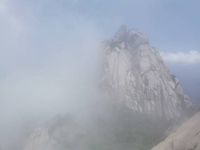 天柱峰,去的当天正值云雾缭绕遮挡主峰,转瞬云雾幻灭,主峰重现眼前,当真妙不可言