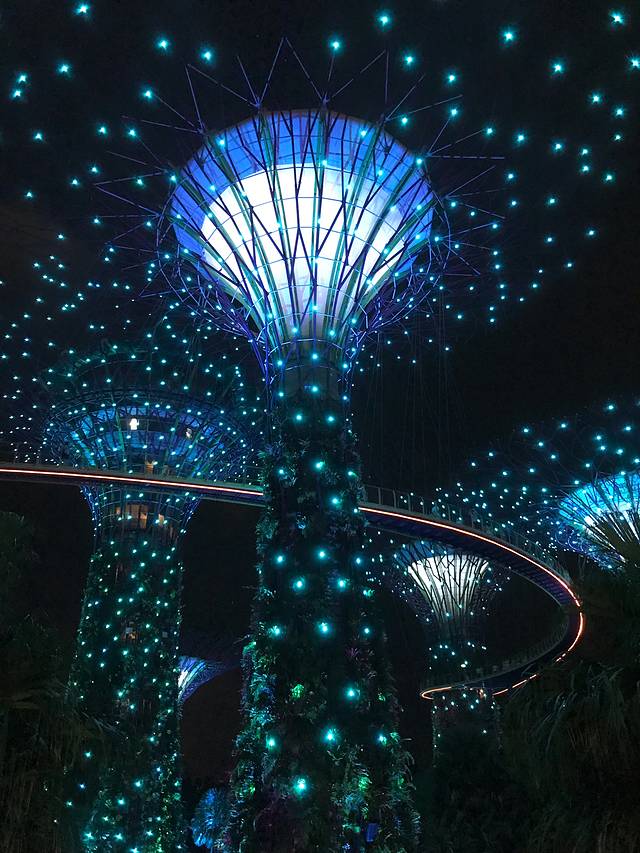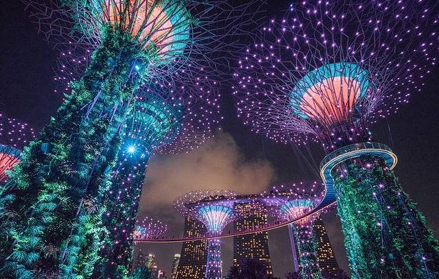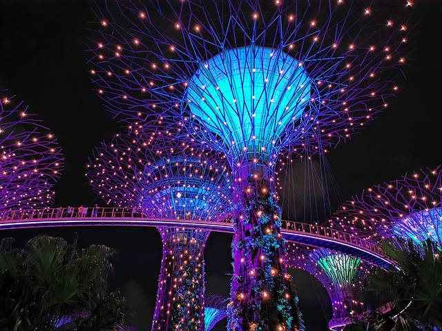 滨海湾花园是新加坡的新地标,由滨海南花园、滨海东花园和滨海中心花园所组成的城市花园带。白天可以参观两个温室,观赏花样万千的植物。晚上可欣赏精彩的灯光秀,感受花园夜景。
