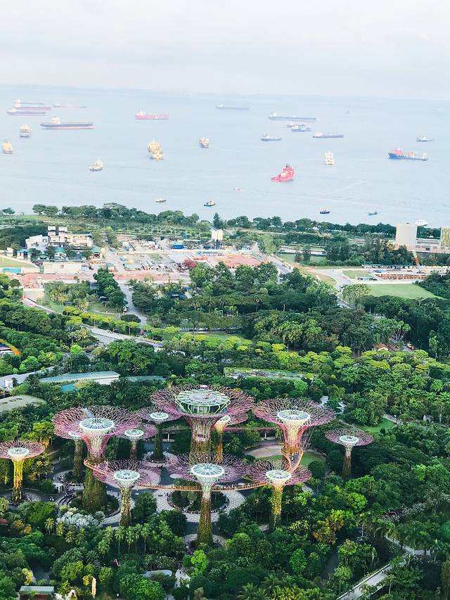 俯瞰整个滨海湾和海滨花园的最佳高点,在这个空中花园看滨海湾风景,太震撼了!感叹滨海湾怎么能这么美!