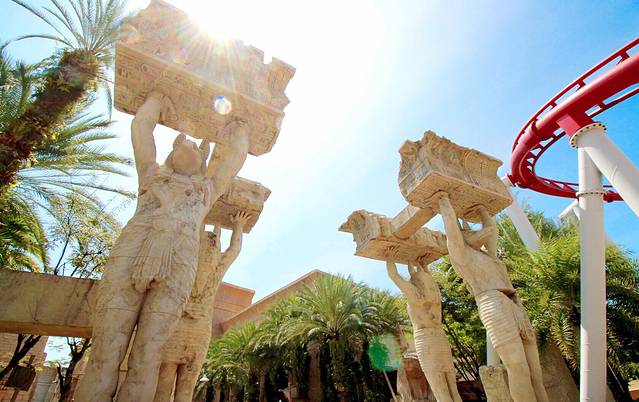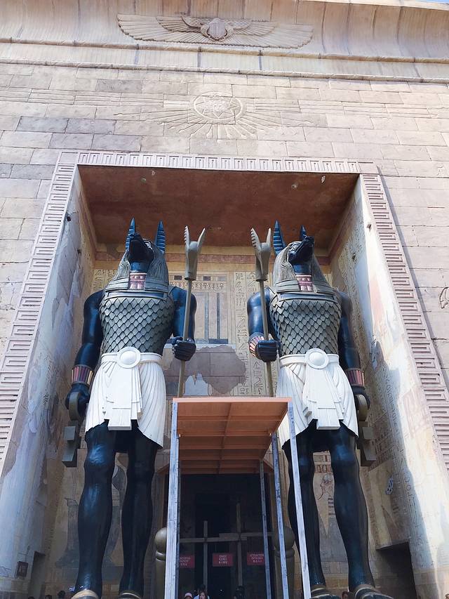 室内过山车木乃伊复仇记的入口,这个过山车有一段会突然倒退喔!请提前做好心理准备😊