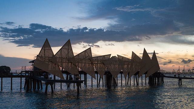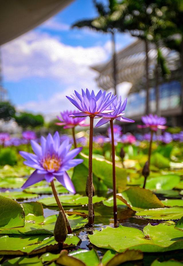 新加坡艺术科学博物馆是世界上首个艺术科学相结合的博物馆。整个建筑都被一个4000平方公尺的荷花池围绕着,犹如一朵绽放的莲花在水边盛开。
