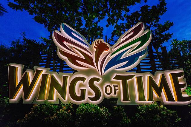 “时光之翼”位于西乐索海滩,是世界唯一设在海边的夜间星光水火大汇演。结合了多媒体特效、喷泉、立体视觉效果、烟花汇演和真人演出的“时光之翼”(Wings of Time),讲述了两名少年在帮助一只名为“沙贝斯”(Shahbaz)的飞禽,寻找回家之路的过程中,穿越时空,四处探索世界,包括涉足沙漠以及潜入海底世界的故事。
