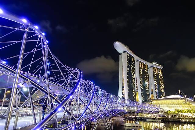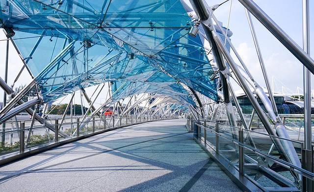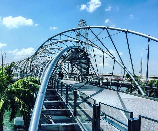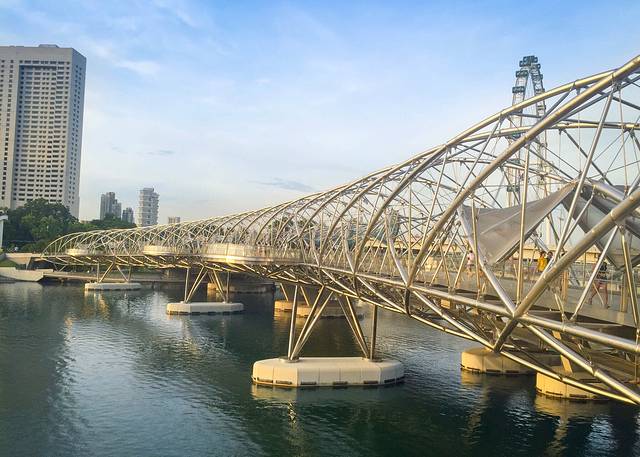 打卡双螺旋桥。新加坡双螺旋桥是世界上首座双螺旋人行桥,桥身设计非常新颖,造型是借鉴人体DNA结构,体现的意义是“生命与延续、更新与成长。大桥有5座观景平台,位置十分优越,可以观赏滨海湾全景。