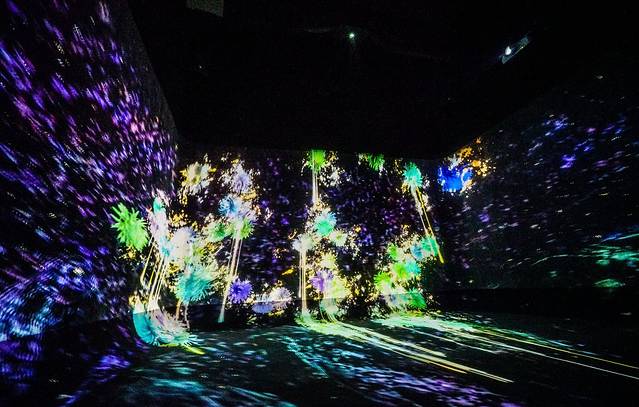 Future Word在博物馆的底层,是一个由艺术与科学交汇的未来世界。在这个流光溢彩的未来世界里,感受一场光和影的饕餮盛宴。花儿在眼前不断地盛开或凋零,海浪在眼前不停息地奔腾翻滚、满天繁星在眼前摇摇欲坠.....