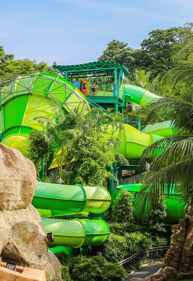 水上探险乐园可尝试各种刺激的水滑道,领略东南亚首架水流磁力过山车的激情与乐趣,前往彩虹礁浮潜与两千多条鱼类为伴,或者涉水走过魟鱼聚居地体验其“翅膀”丝滑般的触觉,还可以选择到冲浪湾尽情地踏浪~