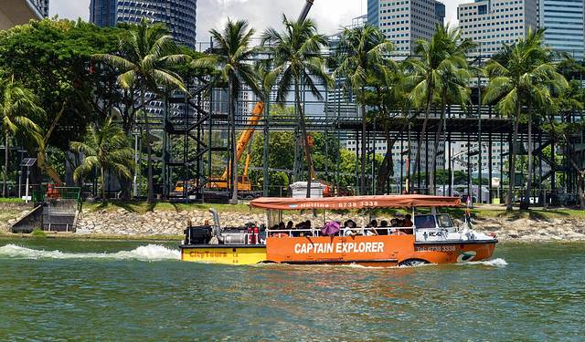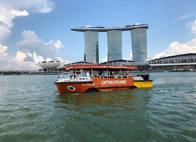 带小朋友的话超级推荐鸭子船,不用走路就能看遍几乎所有著名景点。鸭子船是水陆两栖,由陆地入水时感觉超过瘾!我们是提前预定的中文讲解的鸭子船,讲解员会介绍新加坡的历史及景观,兜一圈大概1个小时左右(半小时在陆地上,半小时在水里),一路先从行政文化区开始,陆上游览会途经国会大厦、高等法庭、圣安德鲁大教堂、滨海艺术中心等标志性建筑。水上游览可以看到摩天轮、金沙酒店、滨海湾花园及鱼尾狮等。水上远眺与陆地近观,各有一番景致与风情。