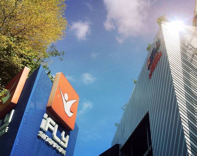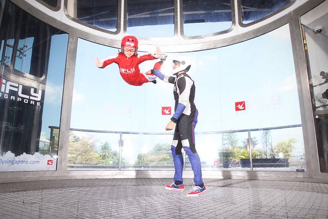 IFLY室内模拟跳伞,需到场馆现场预约活动场次,提前在网上购买了两次飞行的套餐,400多RMB。整个飞行体验活动约1小时,30分钟讲解、动作练习,10分钟更换装备,2次各45秒飞行时间。飞行结束,购买了一张电子照片(附赠U盘)45新币,照片价格不菲~