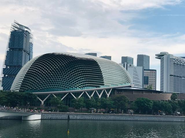 沿途经过“大榴莲”-新加坡滨海艺术中心,虽然看来宛若两个大榴莲,其实建筑师的灵感是来源于蜻蜓的复眼。