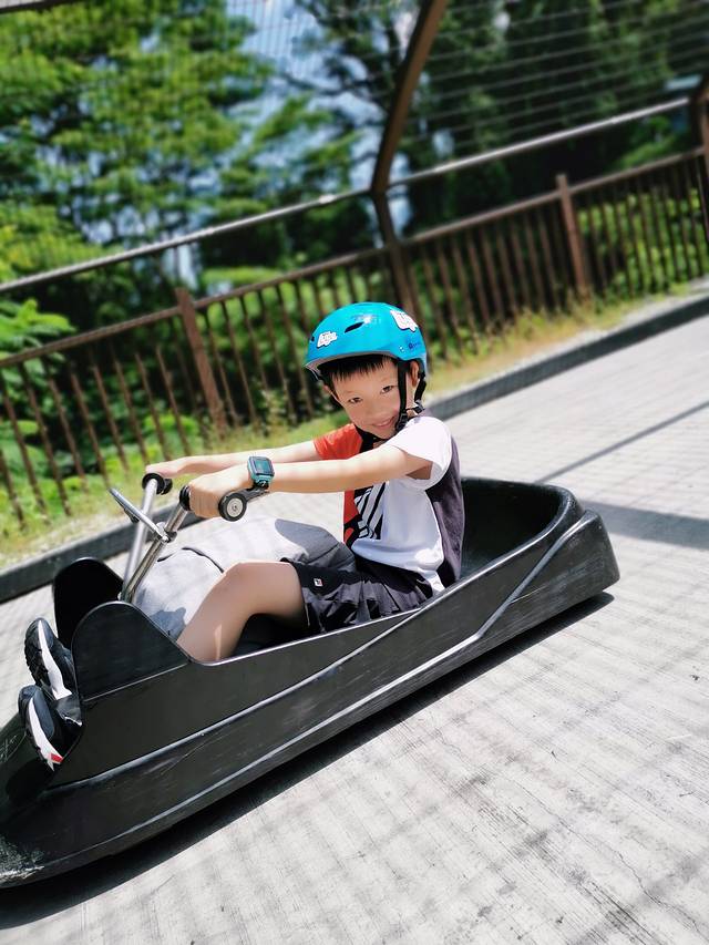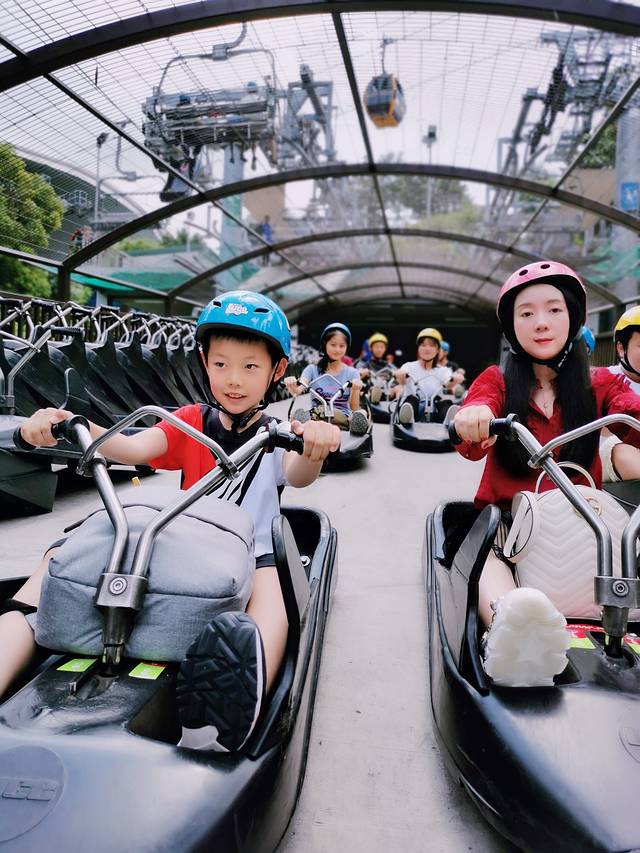 天际线斜坡滑车是类似于卡丁车的游玩设施,出发点在英比奥山顶,从12层楼的高度沿着650米的蜿蜒跑道往下滑冲,只要抓稳驾驶杆左右调节就可以,拉高或完全放低就是刹车,非常容易操控。滑车有两条赛道,第一次可以先左转尝试比较平缓的赛道,第二次再右转体验刺激的急转弯赛道。第一次乘坐往右边排队,因为要进行简单的培训,速度相对较慢,第一次出发工作人员会在你手上盖章作记号。第二次出发就往左边排队,速度相对较快。这个项目绝对是小朋友的最爱~~