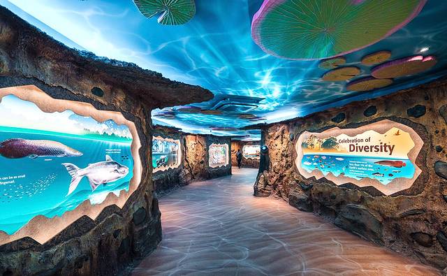 漫步淡水画廊,在河川动物栖息地展览中了解独特的野生动物世界。