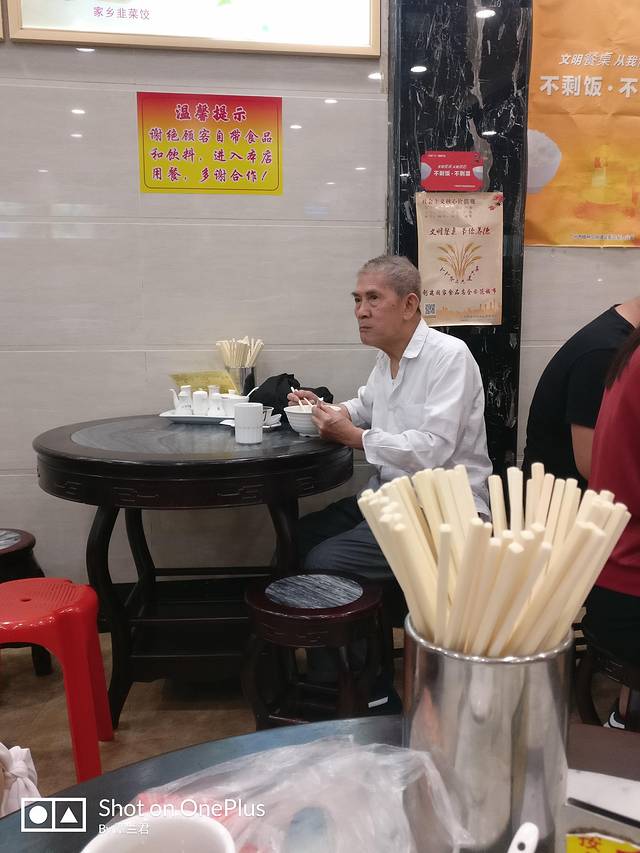 邻桌是一个阿公自己在那吃面,也许是刚刚粥的原因,想起了我外公也喜欢吃面,不由地拍下了这一幕~如果我的外公还在,我是不是也可以带他来这吃碗软乎乎的面呢?
