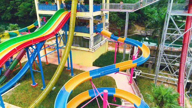 减脂重头戏来了!太空盘漩涡滑道、浪摆滑道、高速滑道、炮筒滑道、雪撬滑道、彩虹滑道和螺旋滑道等项目让你和水流的摩擦达到巅峰,在清凉之余还能给皮肤按摩,双重享受,何乐而不为?