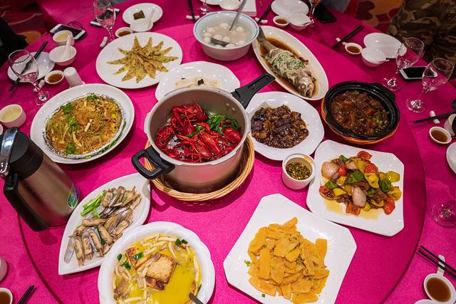 我们是在月湖边上的石浦海味饭店就餐的,自然要点一下人家的拿手菜了,汽锅小龙虾就是他家的特色菜,自打“蚝”汽冲天这道菜出来以后,就很经常能在饭桌上见到高压锅,这会吃的就不是生蚝而是小龙虾了。