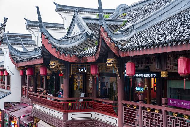 步行街的两旁是宁波老建筑风格了,青瓦屋顶,烽火马头墙,还有许多可以登高望远的桥廊,既有历史的内涵又有现代的时尚,想来是来宁波必不可去的地方了。