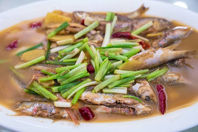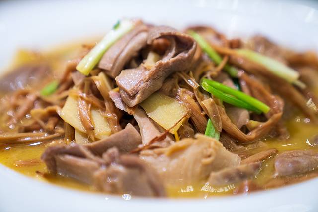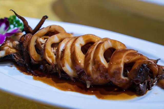 中午我们是在定海区用的餐,大烤墨鱼便是当地的特色菜,墨鱼又叫乌鱼,肉质肥美,虽然极其耗时间,但是用烤的方法大火烧开,中小火收汁,把整个墨鱼的味道浓缩到肉质上,嗯,只能说太适合下酒了。