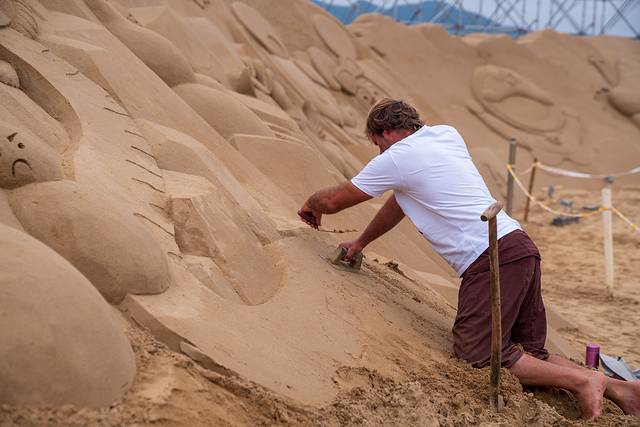 科普一下,沙雕是一种雕刻艺术,只是雕刻的东西比较特别,沙!可以说,他是融雕塑、绘画和娱乐一体的艺术,在现场我们能看到很多外国人正在雕刻,他们将沙堆凝固以后雕刻出一幅一幅的动画人物。