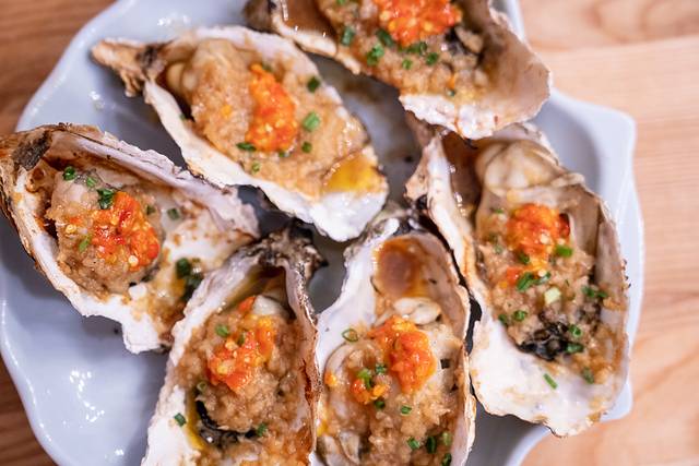 都打开以后,蘸上蚝翅秘制的酱汁,简直,鲜,嫩,肥,美,我一个平时不那么爱吃生蚝的人居然能一口吃下三个不嫌腻,够可以的。