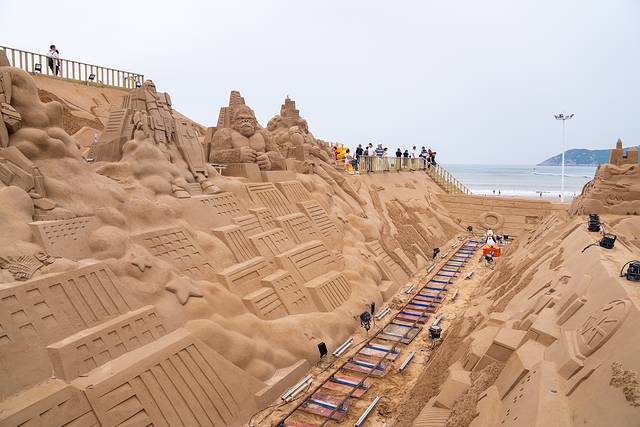 漫步在南沙的沙滩上,远处的舟山国际沙雕节正在筹备中,走进沙雕艺术广场,看到的是一颗颗金色的细纯沙粒所雕刻而成的卡通人物,有你从小看到大的聪明一休,也有可怜的白雪公主,更有打着游戏的魂斗罗,天线宝宝、柯南、小黄人等等等,几乎是没有你想不到的,只有你叫不出的卡通人物!