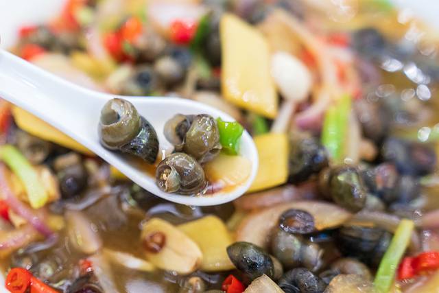 咸肉笋干还是非常不错的,腌制的功夫挺到位,而爆炒溪螺成了我们全桌人重点注意对象,都是在研究着怎么更快的把它吸出来。