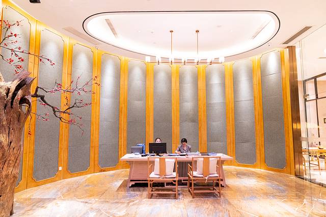整个酒店大堂都是比较国风的,墙面上的知行合一仿佛在告诉我们如何更好的做人,当我在楼下拍照的过程还能听到有人在弹古筝。整个大堂大概容纳了,健身房,前台,休息区,消费区与咨询区,特别大且舒适。