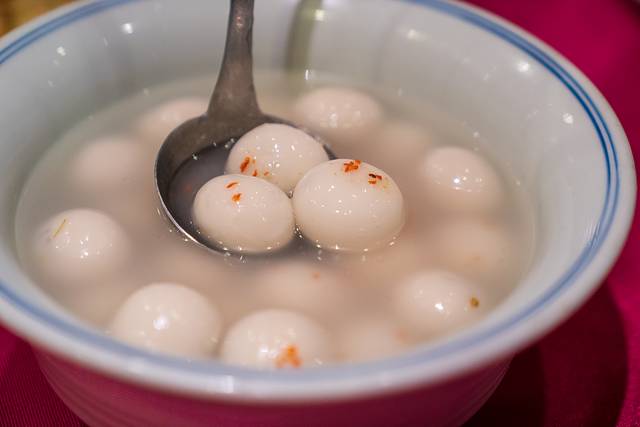 这里要重点推荐一下特色菜宁波汤圆,它的面粉必须要是手磨的糯米粉,而馅料又必须是猪油熬出来的芝麻馅,这样吃起来特别柔韧香甜,并且不油不腻,味道很棒的。