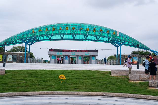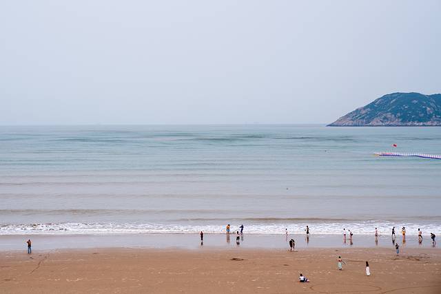 不过开心的是我们居然来到了国际沙雕艺术节的主要场地,也就是朱家尖的南沙风景区。进入景区,是一片平缓的沙滩,一个大型的海滨浴场呈现在眼前,有一些海滩是用来拍照的,而有一些海滩是用来玩耍的。