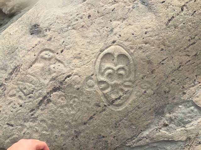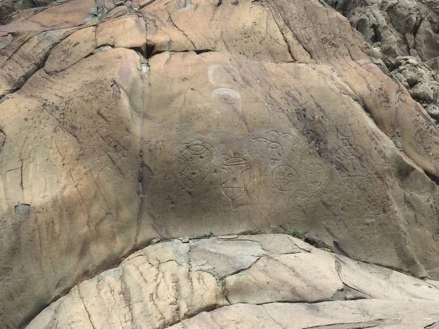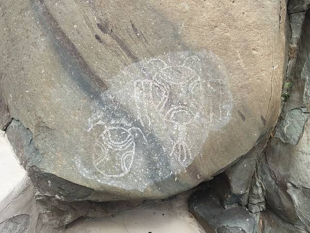 石头上的岩画要听导游讲解,否则根本不知道画的什么。