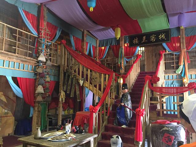 影城由明城、清城和老银川一条街三部分组成,影城中的明城和清城是由明、清两朝遗留下来的屯兵城堡改建的,城廓还保留着西北塞外特有的荒凉残旧、破而不败的景象。在明、清两城中,你可以看到很多耳熟能详的电影场景,如:《大话西游》中孙悟空和紫霞仙子站立的城门楼、牛魔王的招亲台、唐僧的受刑台;还有电影《红高粱》中的月亮门、“我爷爷”醉酒后撒尿的酿酒作坊、九儿出嫁时乘坐的轿子、盛酒的大缸、碗具等。影城内很多地方都有服装和道具出租,在这里穿一套戏中的服装,用一用影片中的道具。到处都是紫霞仙子。人山人海,照相不易。