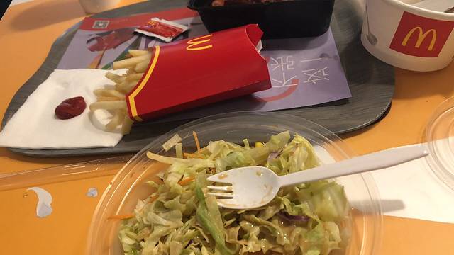 中午和我家哥哥在附近商场逛了下,吃了麦当劳,哈哈,哥哥吃肉,我吃蔬