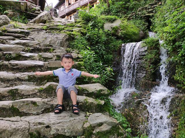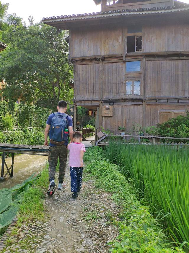 侗赏,是一位知名服装设计师设计的艺术主题酒店,或许,看见服装设计这词儿,早已经在心中种草。其他客栈也动摇不了我。然而,管家看见我们一家三口住的房间较小,免费给我们升级两晚大房,也是旅途中的惊喜!推开窗户便看见侧边的小溪,听见溪水缓缓地流过…早上起来,空气特别特别的清新!
