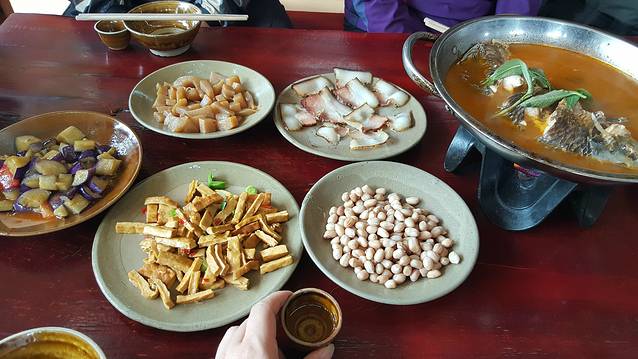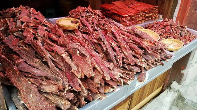 西江千户苗寨旅游开发成熟,食宿不愁。吃,出名的是长桌宴,寨中的饭店到处都会有人问你要不要吃长桌宴,把桌子拼得长些,就算长桌宴了,权当是体验一把。真正的长桌宴是露天的,数十张桌子连得老长老长,从头都不一定见得到尾,在重要节日和重要旅行团来访时,会摆正宗的长桌宴,遇上千万不要错过。黔东南的口味偏酸,苗寨特色美食有酸汤鱼、酸菜、腊肉等。