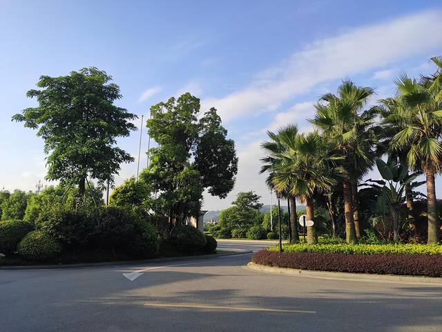 出行不太方便,不过风景还不错。出门的几棵树让我有三亚的感觉。