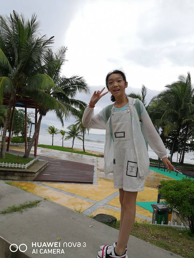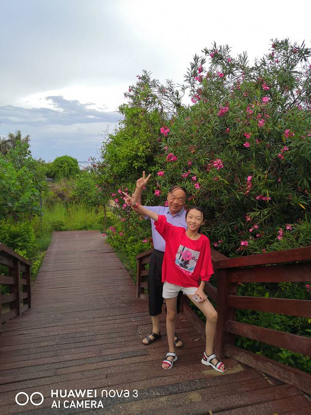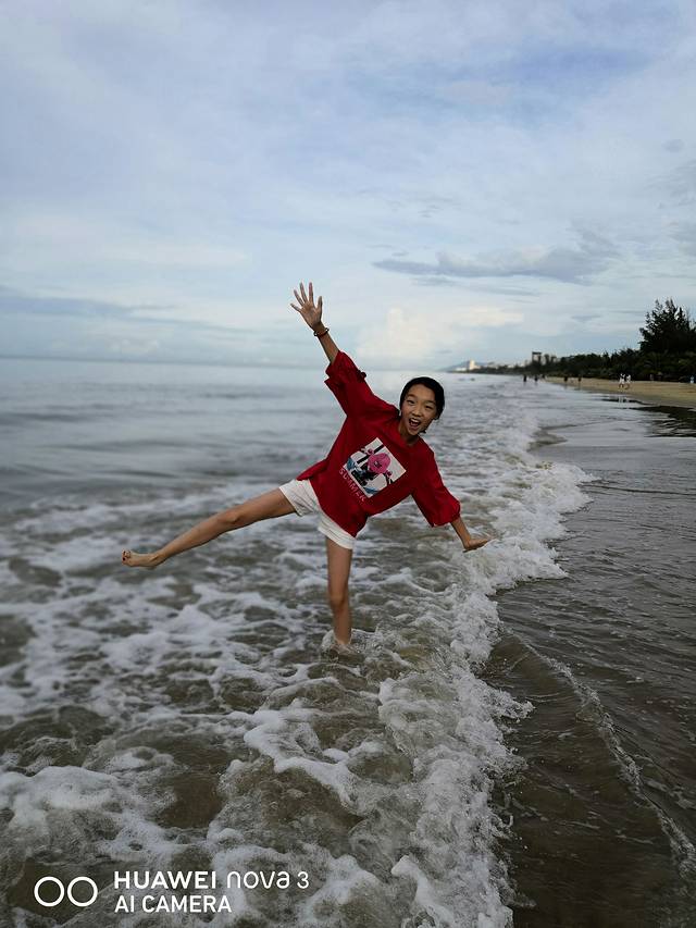 从酒店到海边还是真心的近,只隔了一条马路,唯一有点遗憾的是过了马路先看到的是一片回族人的坟墓,我们往前走了两百米,有一条下海边的小道,女儿就忍不住要拍照啦😄
