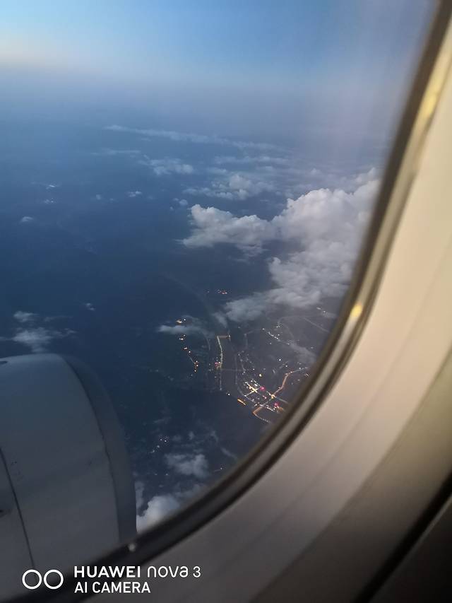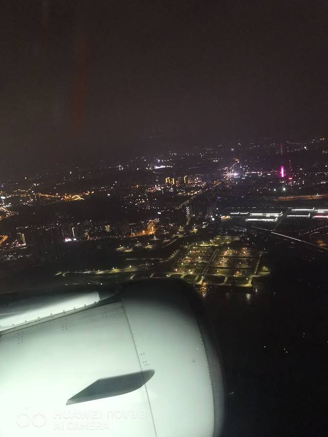 我们买的是新疆乌鲁木齐—三亚(途径重庆)的机票,在飞机上欣赏重庆的夜景